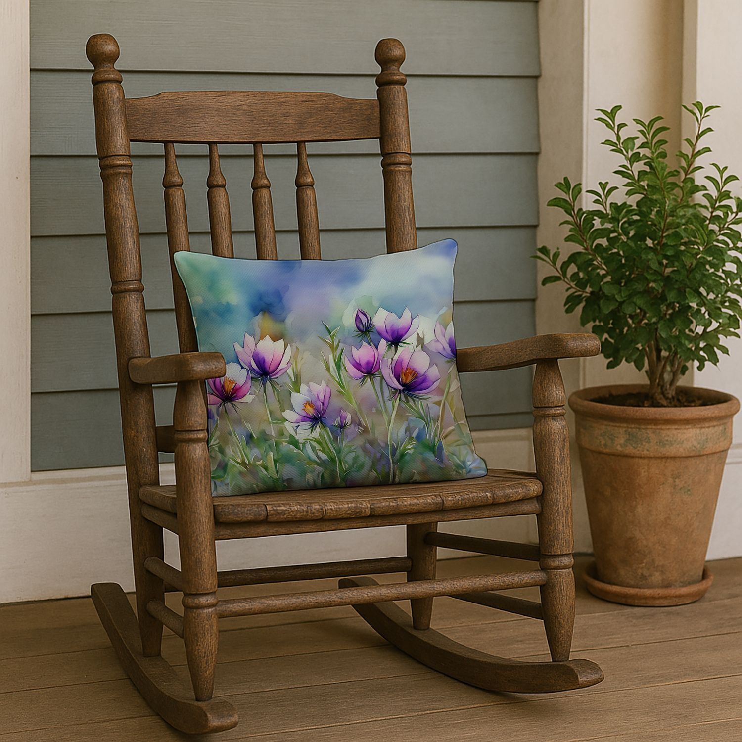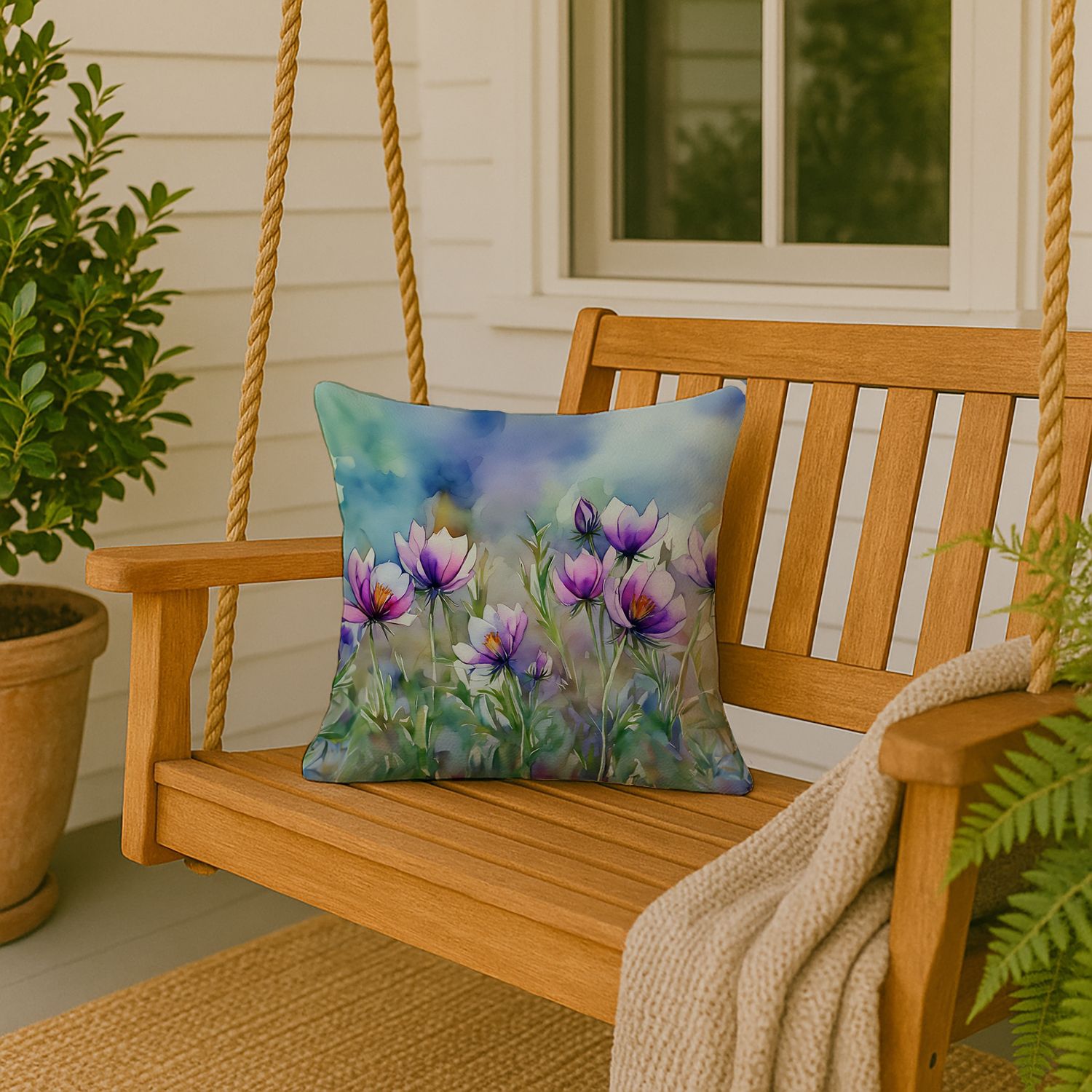 South Dakota Pasque Flowers in Watercolor Throw Pillow Machine Washable, Indoor Outdoor Decorative Pillow for Couch, Bed or Patio, 18Hx18W