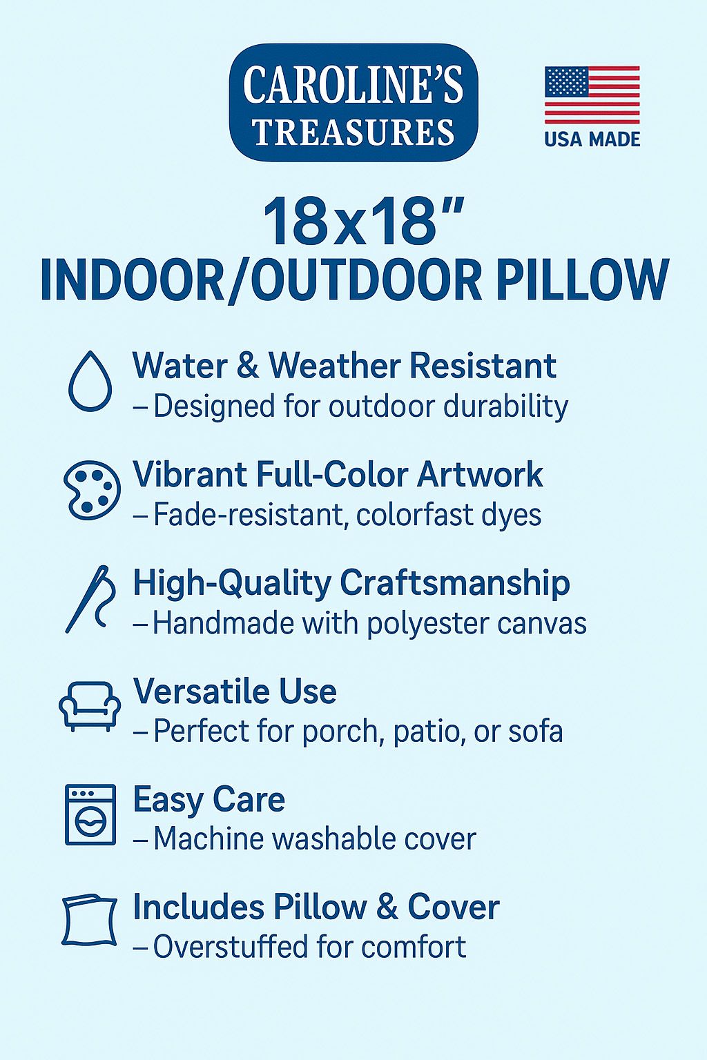 1.High-Quality Material: Our 18x18 Fabric Decorative Pillow from Caroline's Treasures features a durable 100% polyester fabric sham, designed to be water-resistant and withstand various weather conditions, perfect for outdoor patio furniture or indoor use.