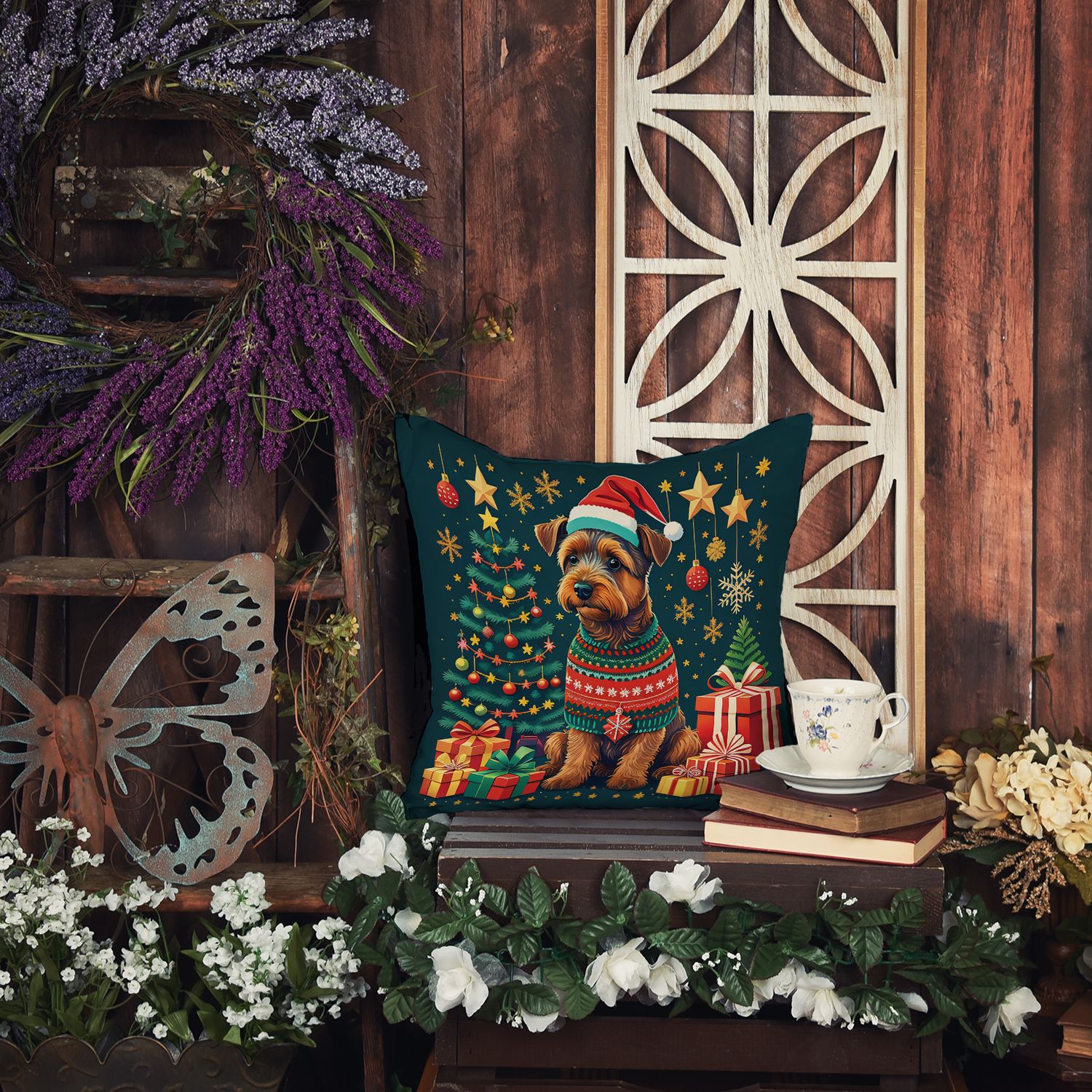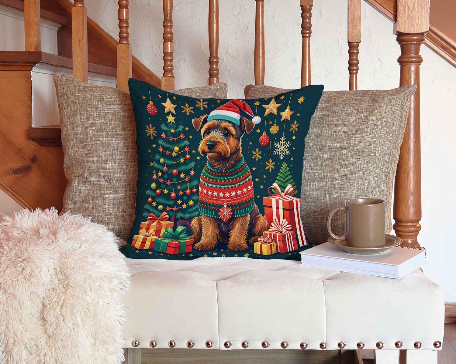 Welsh Terrier Christmas Throw Pillow Machine Washable, Indoor Outdoor Decorative Pillow for Couch, Bed or Patio, 14Hx14W
