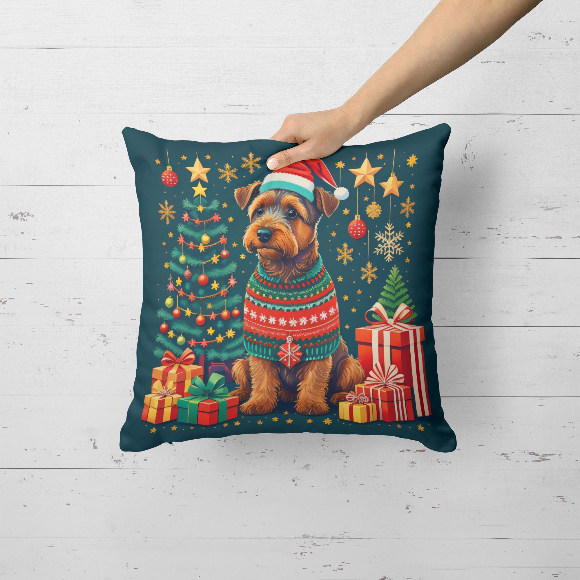 Throw Pillow featuring breed specific Welsh Terrier artwork. Celebrate Christmas with this Christmas Pillow. Add a touch of vibrancy and comfort to your outdoor seating with Caroline's Treasures Fabric Decorative Pillow. Measuring approximately 14 inches by 14 inches, this outdoor pillow is crafted to elevate the appeal of your patio furniture, infusing it with vivid color and artistic flair. The pillow includes a 100% Polyester Fabric sham filled with a quality pillow form to provide superior comfort. Innovatively made from our brand new material, specifically woven for its water resistance, this pillow is designed for durability. The soft canvas fabric offers versatility in use, fit for your indoor couch or your outdoor patio, porch, or veranda. The fabric is dyed with colorfast dyes built for resilience against weather conditions, ensuring the pillow retains its beauty over time. Constructed by sewing three fabric pieces to create a sham, the polyester insert is then nestled inside to form the pillow, resulting in an overstuffed pillow that maintains its shape. Both the sham and the pillow insert are proudly made in the United States. As the pillows are handcrafted, there may be minor variations in size, further enhancing their unique charm. Experience comfort in style with Caroline's Treasures Fabric Decorative Pillow.