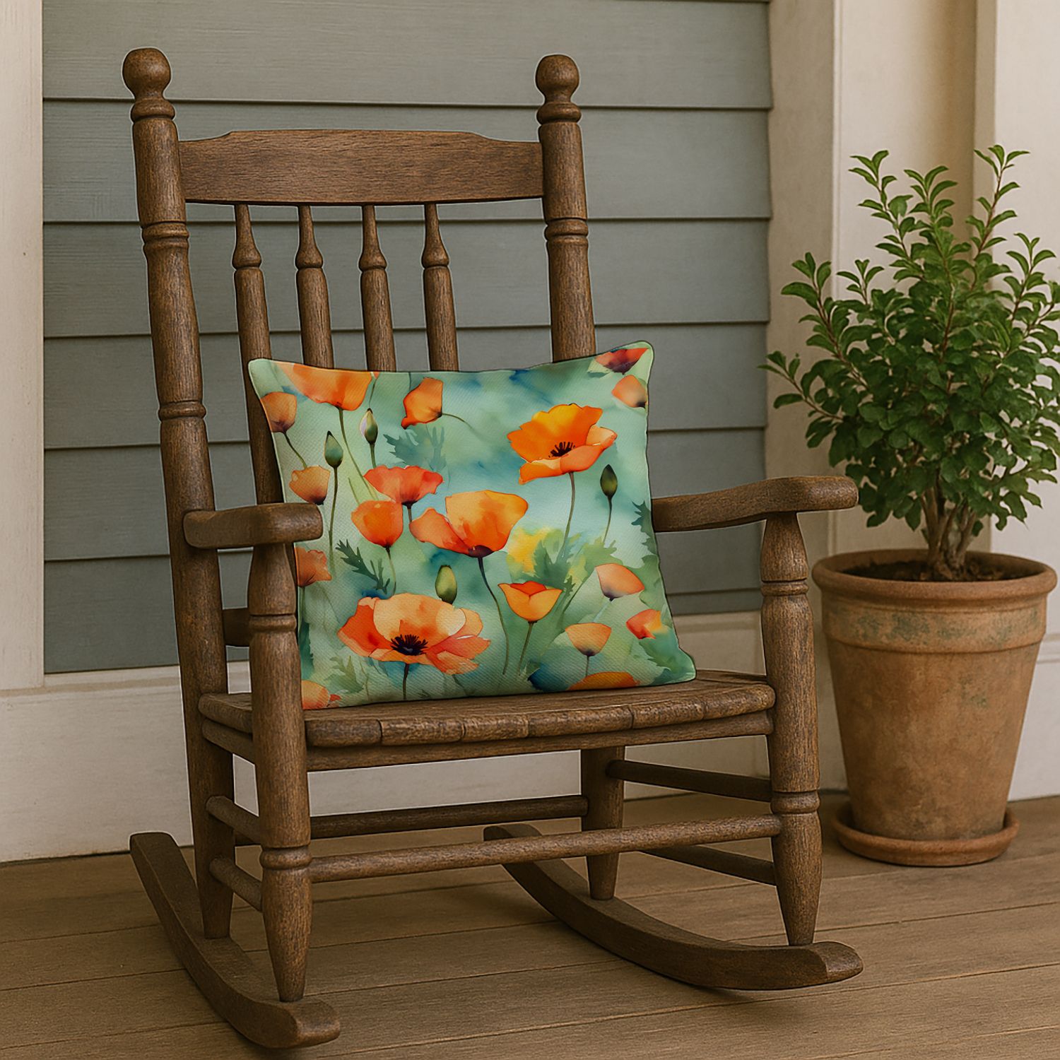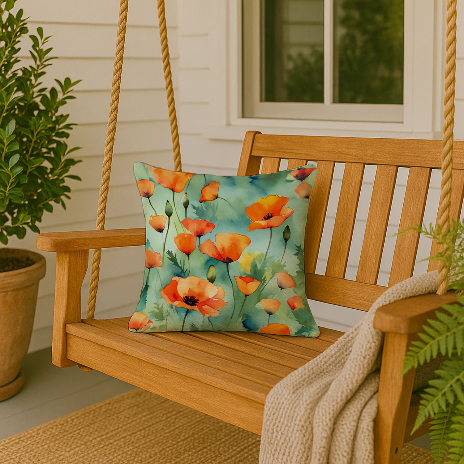Home > California California Poppies in Watercolor Throw Pillow Machine Washable, Indoor Outdoor Decorative Pillow for Couch, Bed or Patio, 18Hx18W
