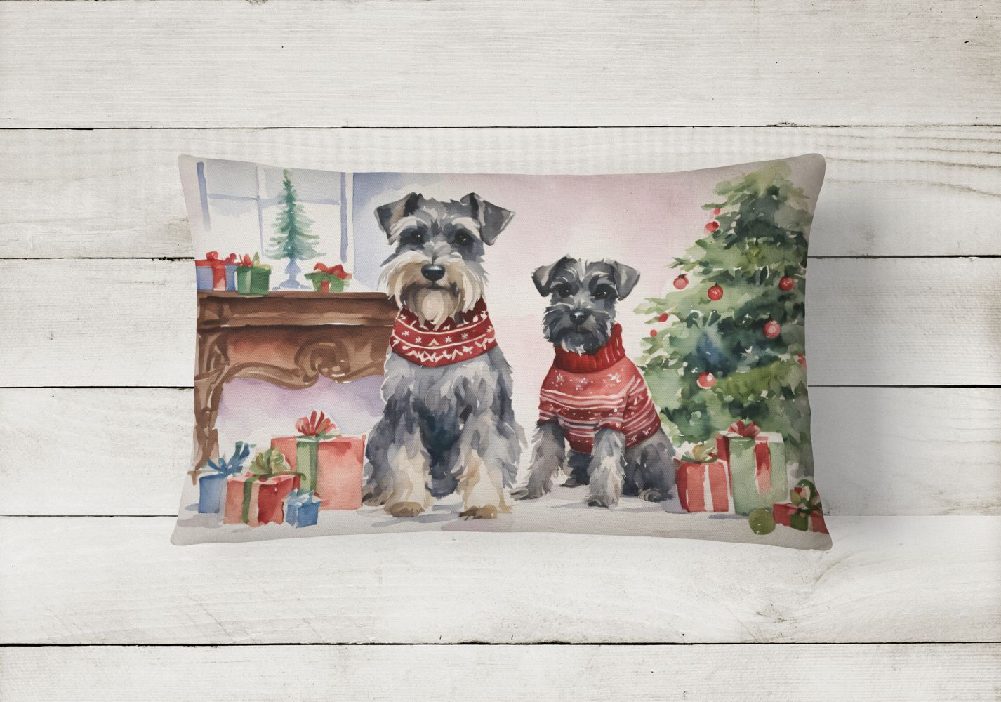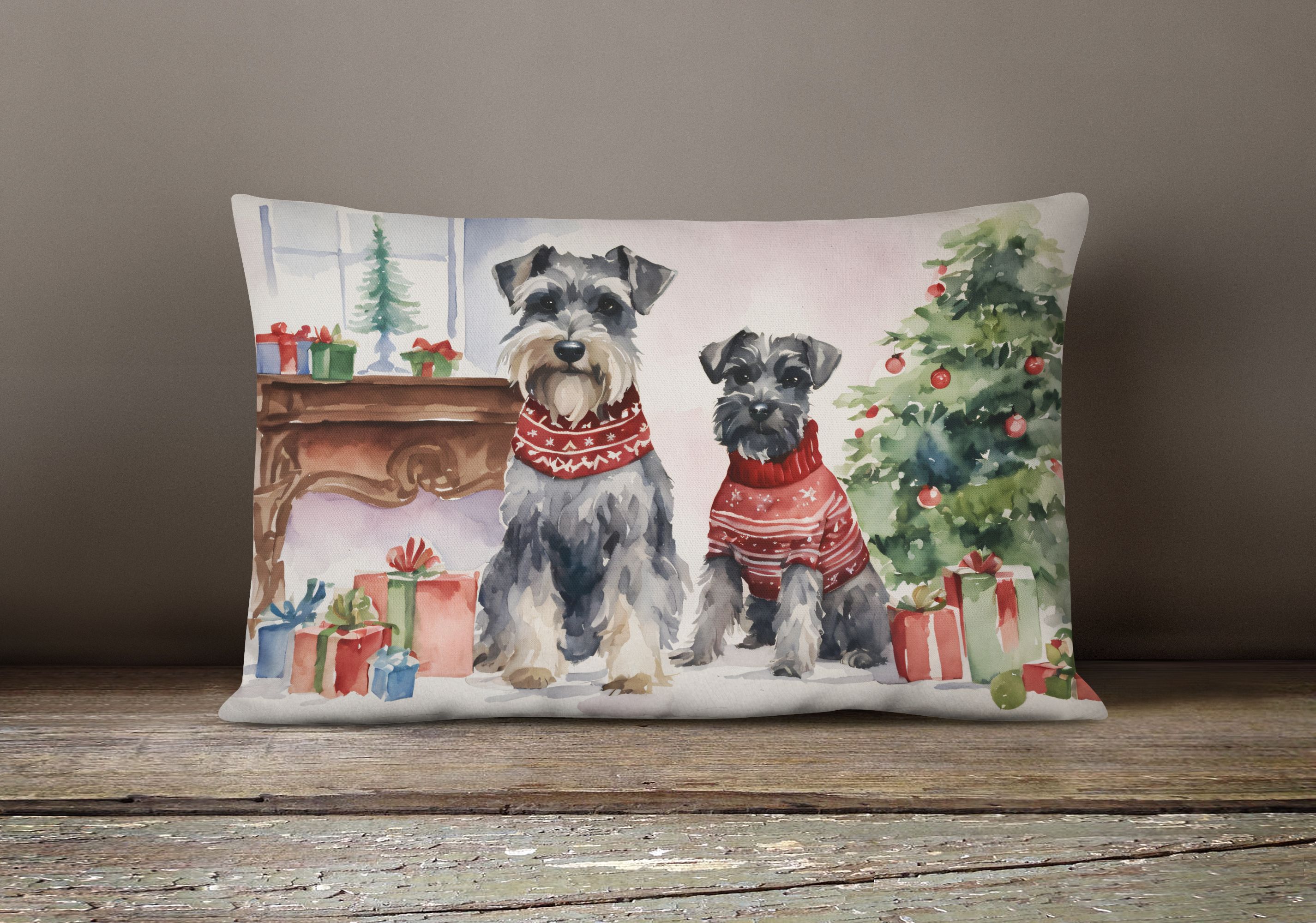 Throw Pillow featuring breed specific Schnauzer artwork. Celebrate Christmas with this Christmas Pillow. Embrace the fusion of comfort and style with Caroline's Treasures Fabric Decorative Pillow. This 12x16 inch outdoor pillow is designed to complement your patio furniture, adding a splash of color and artistry to your outdoor setting. Constructed with a 100% Polyester Fabric pillow sham filled with a plush pillow form, this cushion is as comfortable as it is durable. Our outdoor pillow utilizes a novel fabric, meticulously woven for enhanced water resistance. This soft canvas material is equally suited for your indoor couch as well as outdoor settings such as the patio, porch, or veranda. To ensure enduring vibrance, we employ colorfast dyes resistant to fading even when subjected to weather elements. The making of this pillow involves the delicate sewing together of three fabric pieces to create a sham, into which a polyester insert is carefully placed. The result is an overstuffed pillow that tenaciously holds its shape. With both the sham and the pillow insert crafted in the United States, these handmade pillows are a testament to superior local craftsmanship. Note that as these pillows are handmade, sizes may slightly vary, enhancing their unique appeal. Enjoy comfort in style with Caroline's Treasures Fabric Decorative Pillow.
