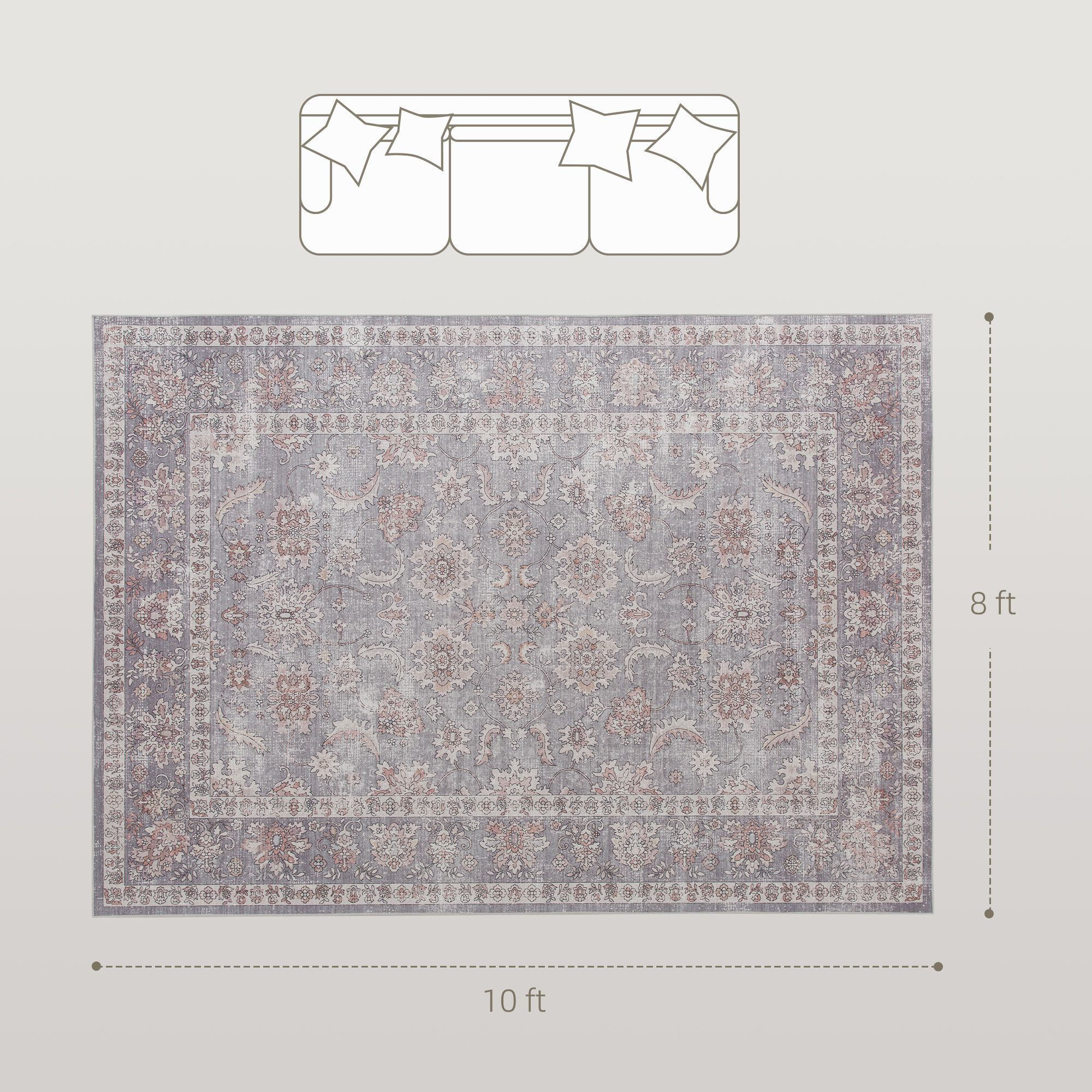 Step into comfort and style with the HOMCOM washable rug. A distressed floral and vine pattern with subtle tonal contrast brings a calm, traditional feel to any room. Made from soft chenille, this bedroom rug feels gentle underfoot and is easy to care for. Machine washable and equipped with a non-slip TPR backing, it stays secure while keeping maintenance simple.