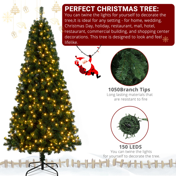 6ft PVC Material DIY 150 Lights Warm Color 8 Modes 1050 Branches Christmas Tree Green