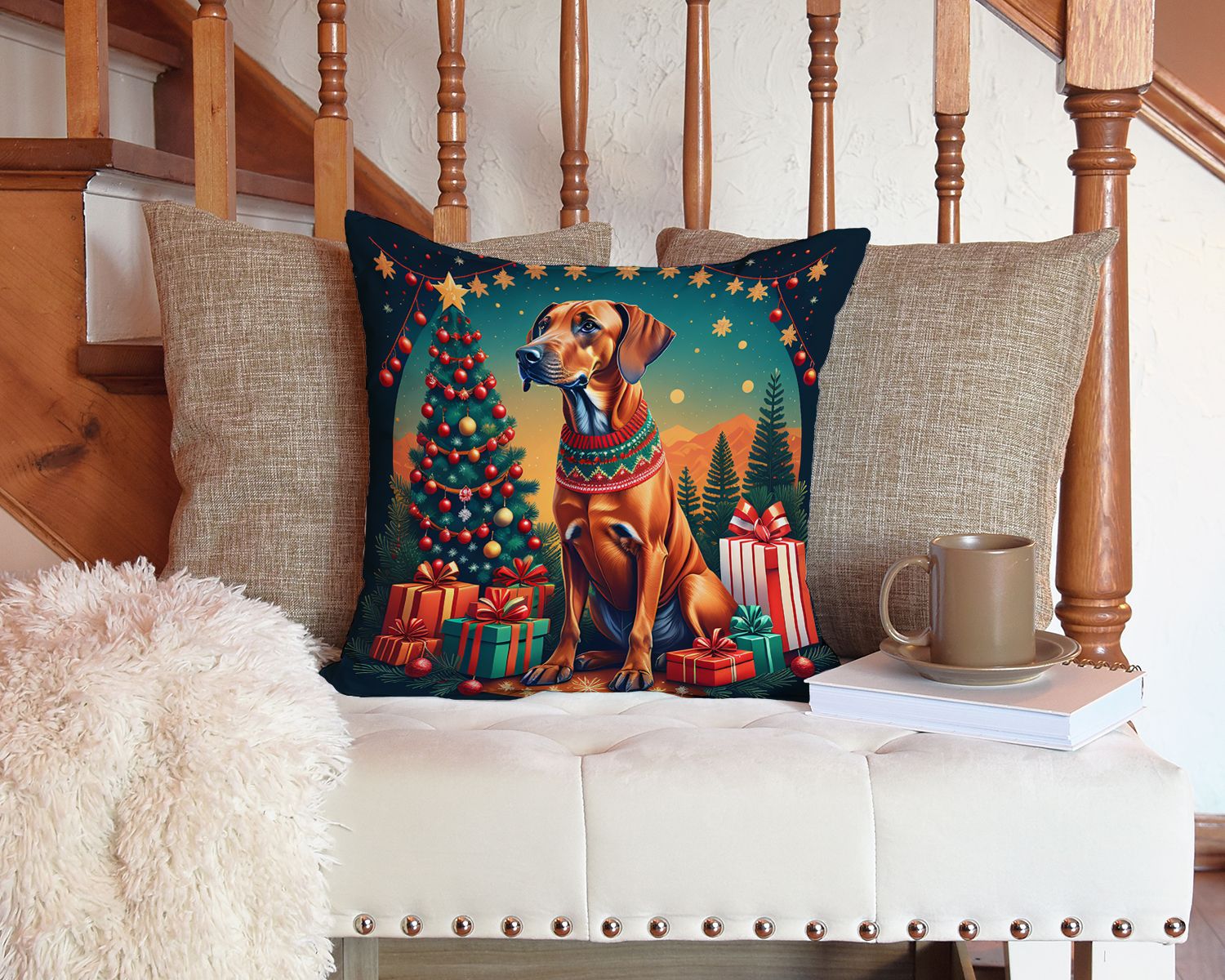Rhodesian Ridgeback Christmas Throw Pillow Machine Washable, Indoor Outdoor Decorative Pillow for Couch, Bed or Patio, 14Hx14W
