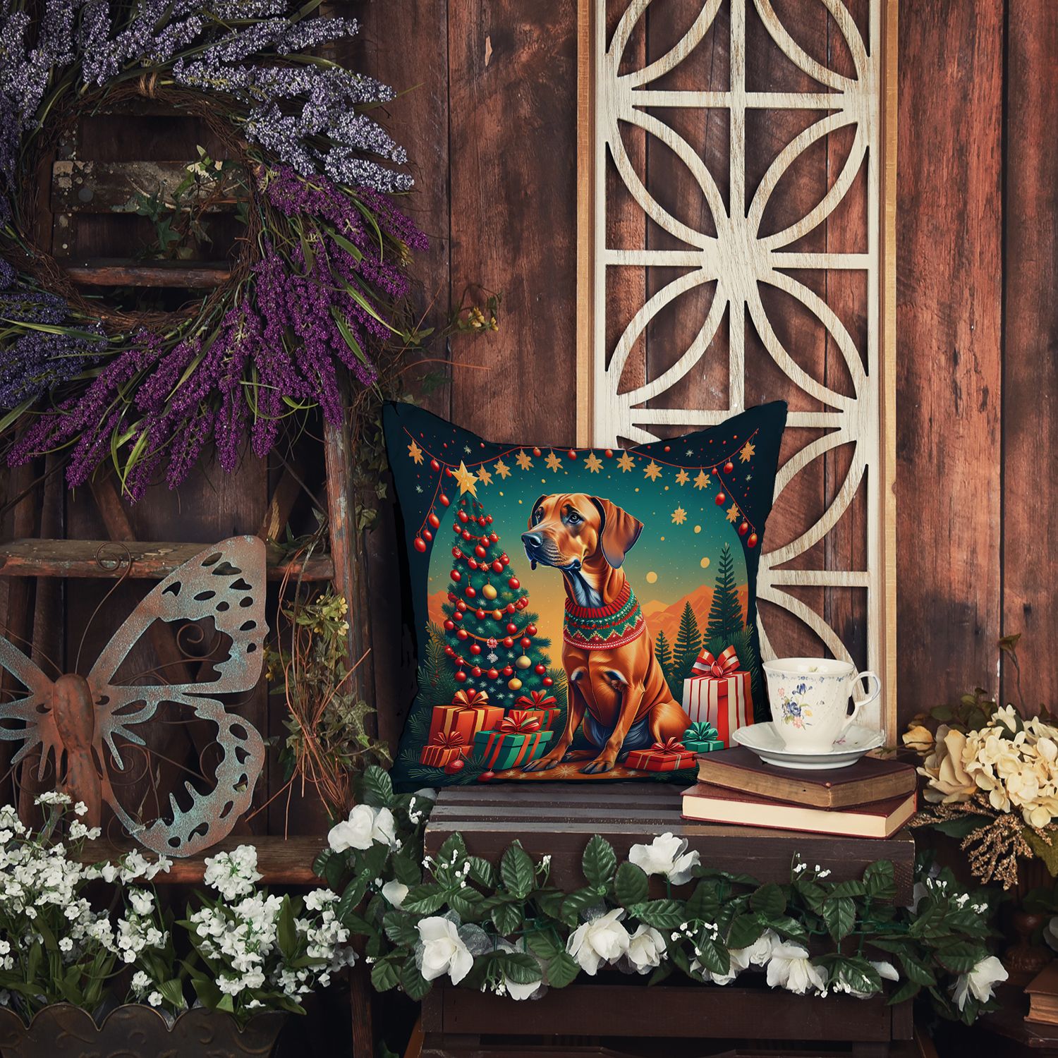 Throw Pillow featuring breed specific Rhodesian Ridgeback artwork. Celebrate Christmas with this Christmas Pillow. Add a touch of vibrancy and comfort to your outdoor seating with Caroline's Treasures Fabric Decorative Pillow. Measuring approximately 14 inches by 14 inches, this outdoor pillow is crafted to elevate the appeal of your patio furniture, infusing it with vivid color and artistic flair. The pillow includes a 100% Polyester Fabric sham filled with a quality pillow form to provide superior comfort. Innovatively made from our brand new material, specifically woven for its water resistance, this pillow is designed for durability. The soft canvas fabric offers versatility in use, fit for your indoor couch or your outdoor patio, porch, or veranda. The fabric is dyed with colorfast dyes built for resilience against weather conditions, ensuring the pillow retains its beauty over time. Constructed by sewing three fabric pieces to create a sham, the polyester insert is then nestled inside to form the pillow, resulting in an overstuffed pillow that maintains its shape. Both the sham and the pillow insert are proudly made in the United States. As the pillows are handcrafted, there may be minor variations in size, further enhancing their unique charm. Experience comfort in style with Caroline's Treasures Fabric Decorative Pillow.