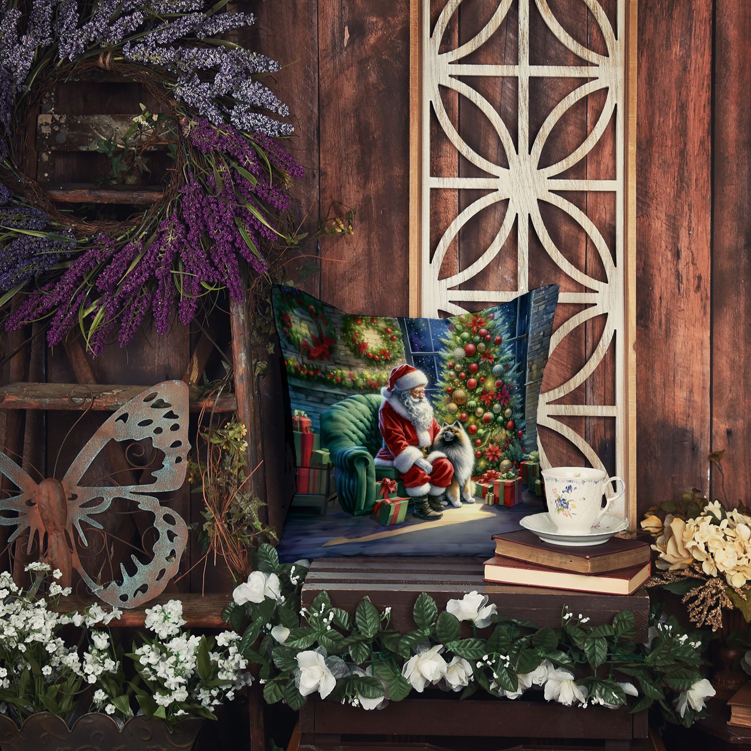 Home > Keeshond and Santa Claus Throw Pillow Machine Washable, Indoor Outdoor Decorative Pillow for Couch, Bed or Patio, 18Hx18W