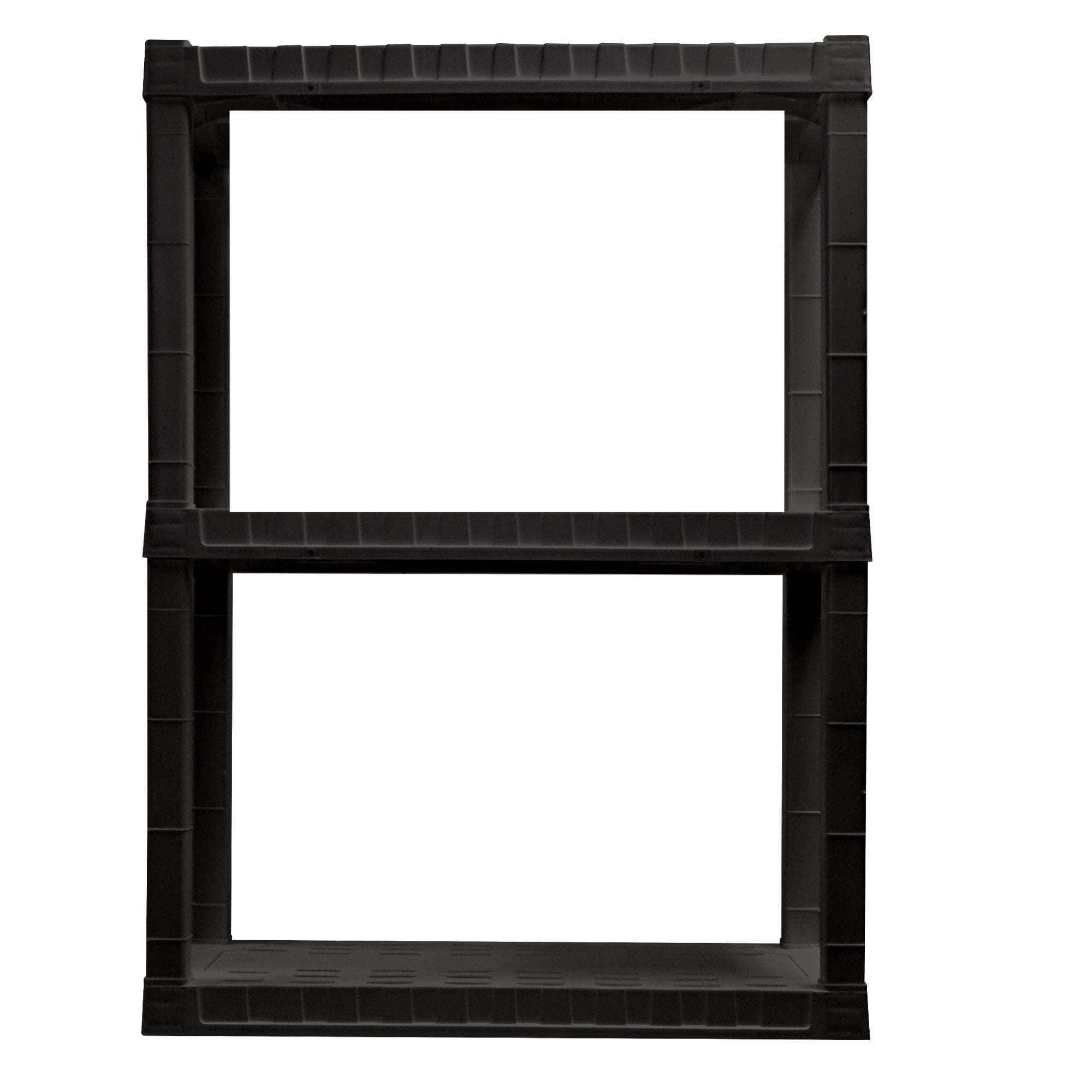 Maximize your storage space with this versatile 3-tier Plastic Shelves, proudly manufactured in North America. The lightweight garage shelves snaps together with no tools required and the heavy-duty moulded plastic resin shelves hold up to 100 lbs (45 kg) each. Whether you are reorganizing your shoe collection, decluttering the tool shed, or spring cleaning the toy room, Hyper Tough Plastic Shelves has the perfect shelving solution for you!