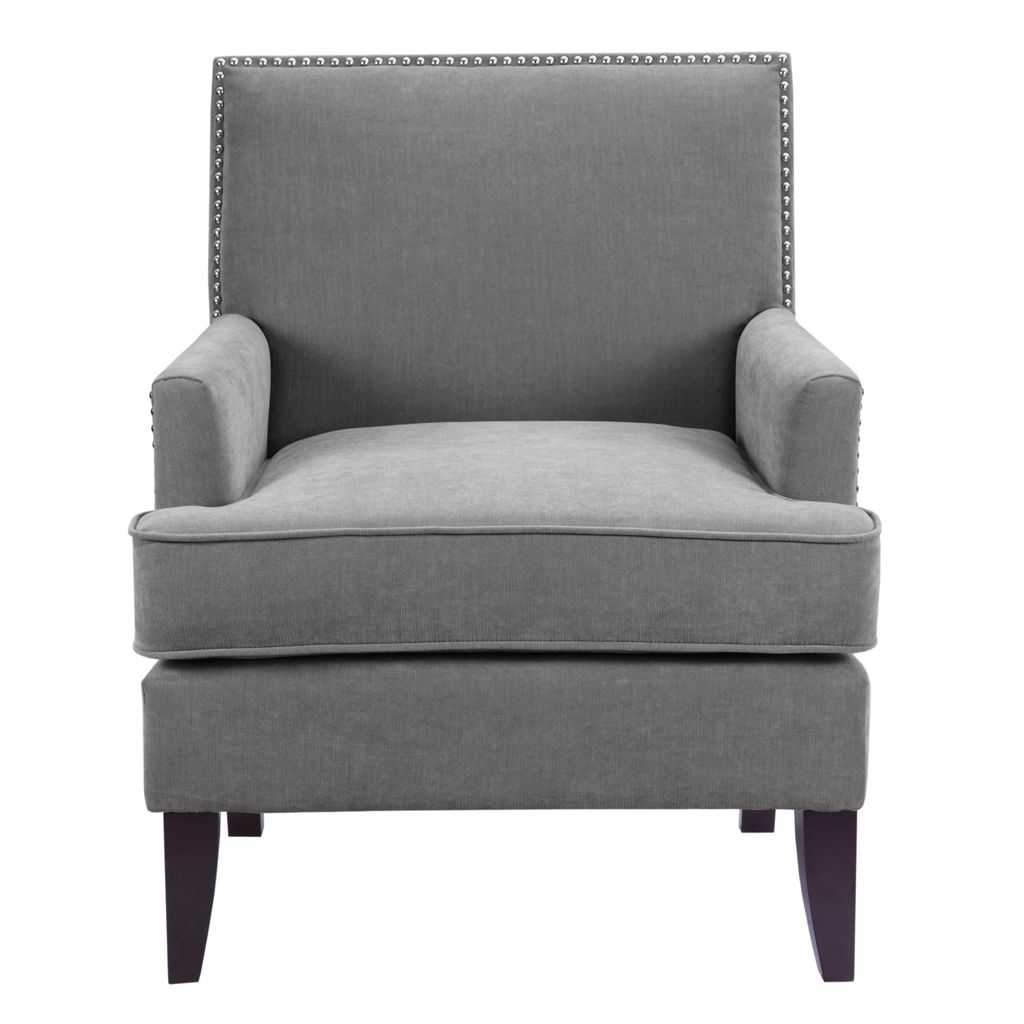 The Madison Park Colton Track Arm Club Chair brings a simple and sharp update to your home decor. This accent club chair features a sleek design with track arms and a nailhead trim along the back and sides, adding an elegant touch to the contemporary look. The exposed, solid wood legs provide a sophisticated complement to the upholstery to give this accent chair a stylish allure. A removable high density foam cushion completes the design and offers exceptional comfort to any room in your home. Leg assembly is required.