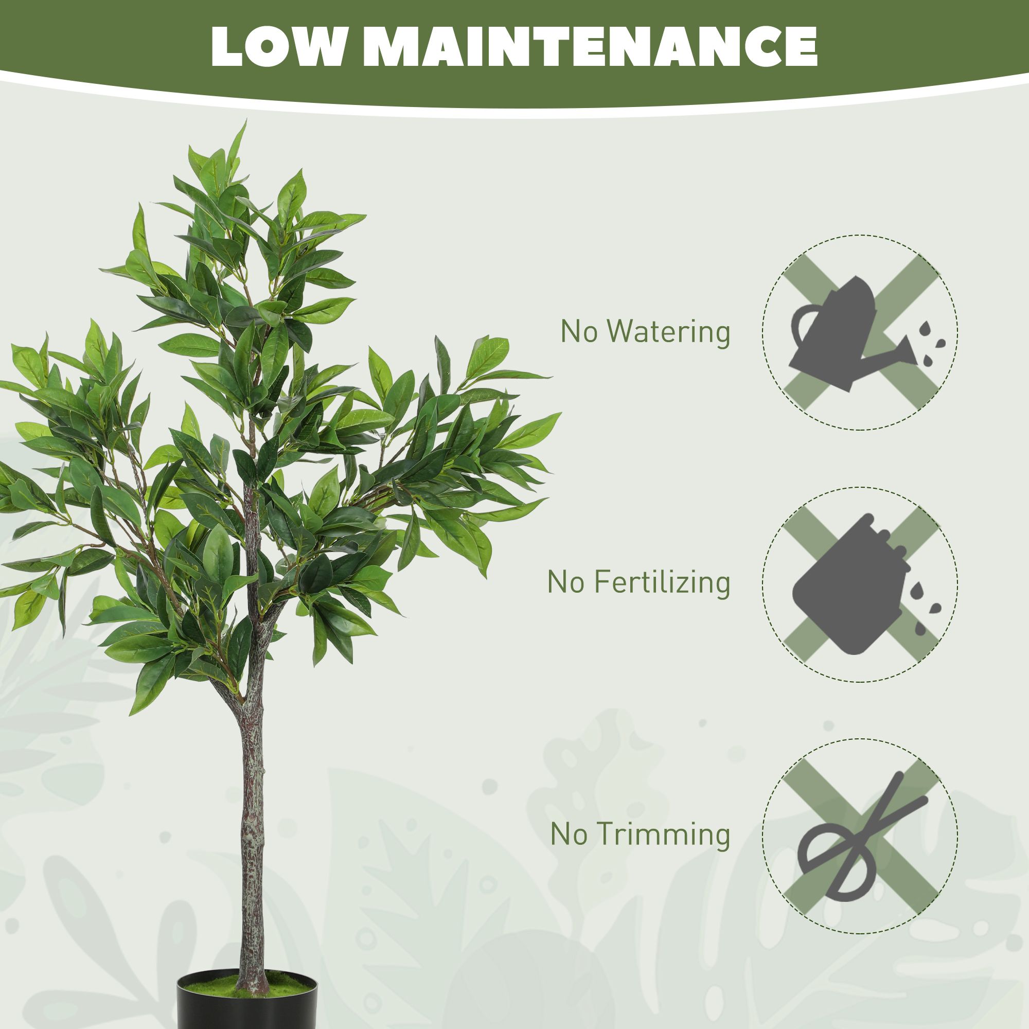 HOMCOM Potted Fake Plant, Lifelike Laurel Artificial Tree with 345 PEVA Leaves for Home Decor, Green