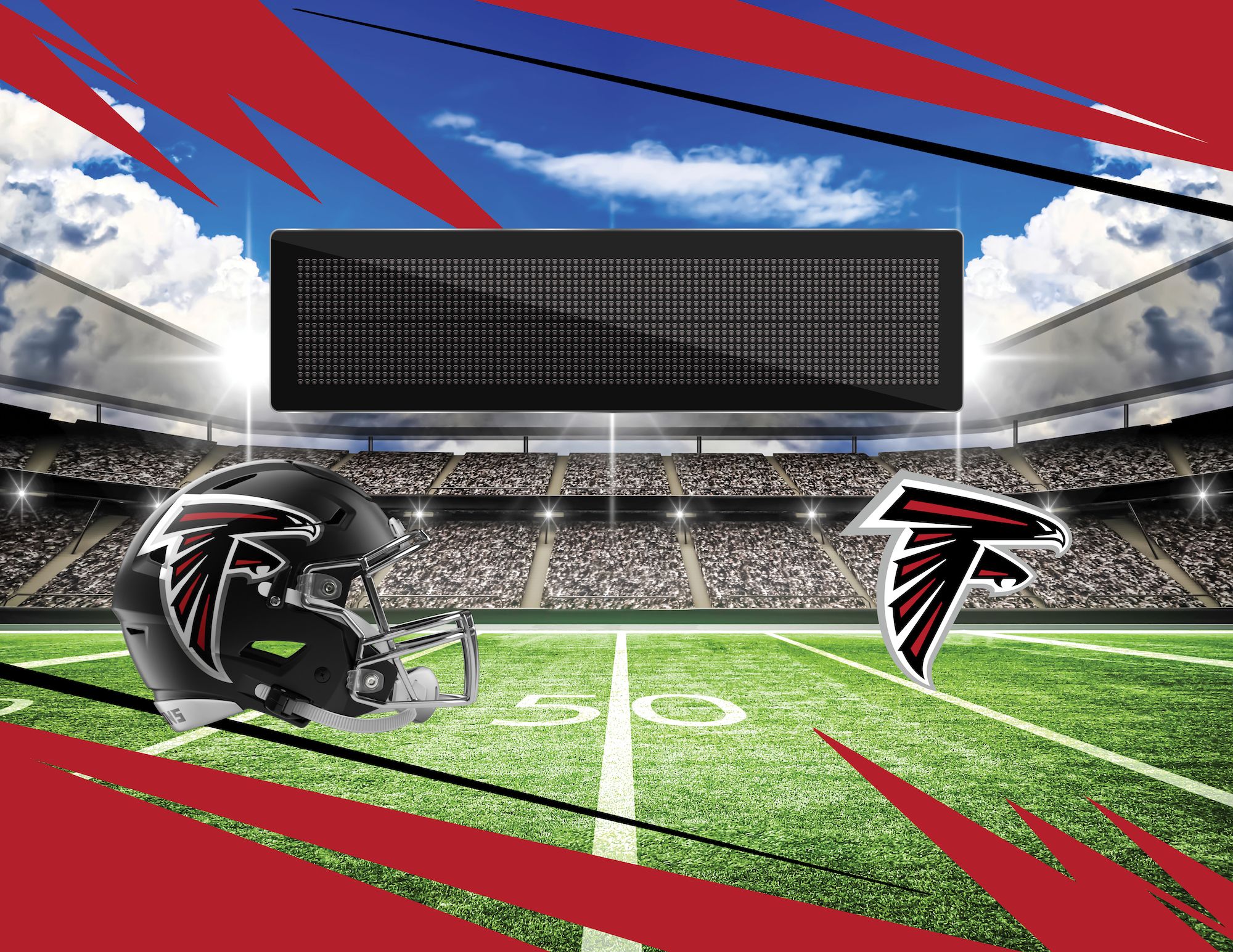 Features a football stadium, helmet and your favorite team's logo with a scoreboard ready for your personalization