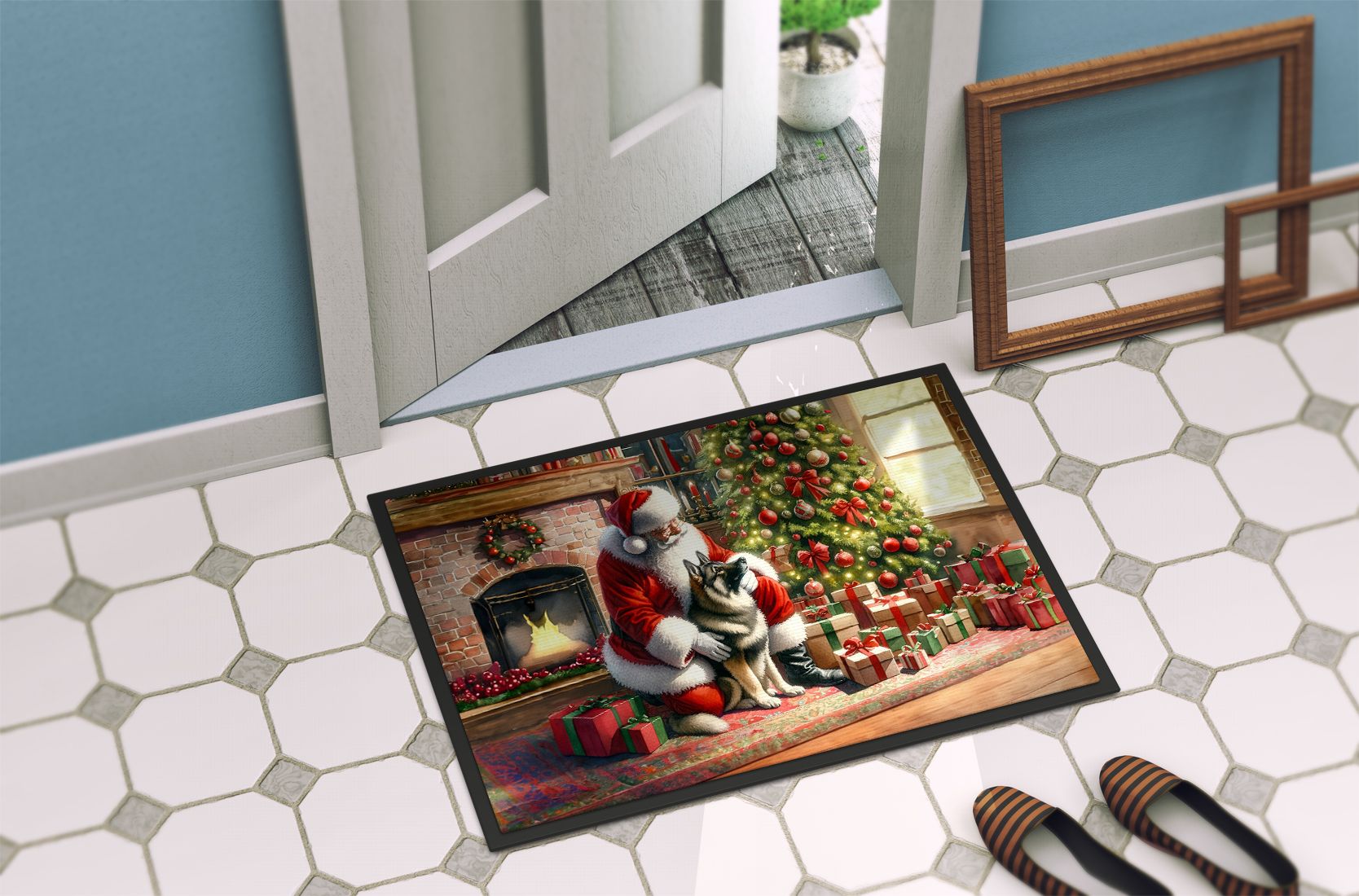 NEW Norwegian Elkhound and Santa Claus Doormat Front Door Mat Indoor Outdoor Rugs for Entryway, Non Slip Washable Low Pile, 18H X 27W