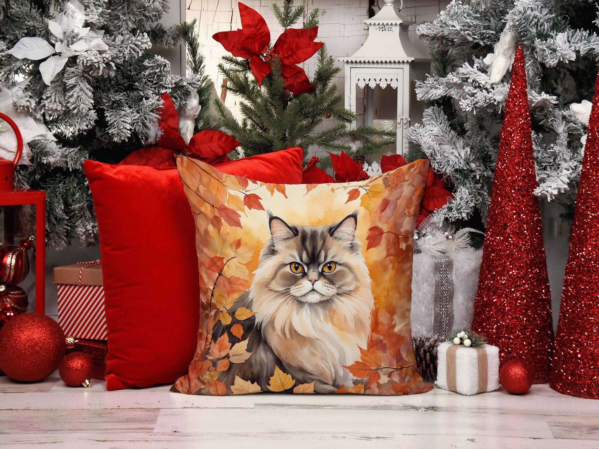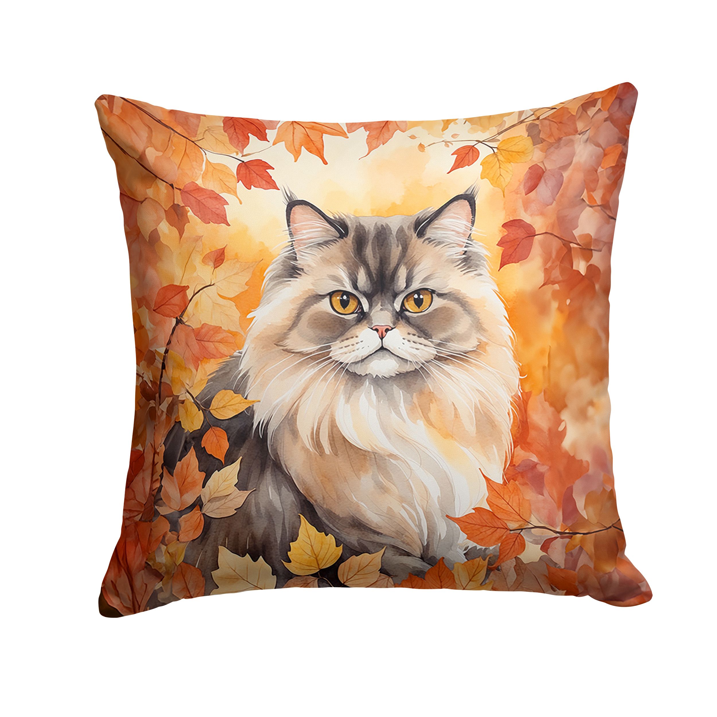 Home > Persian Cat in Fall Leaves Throw Pillow Machine Washable, Indoor Outdoor Decorative Pillow for Couch, Bed or Patio, 14Hx14W