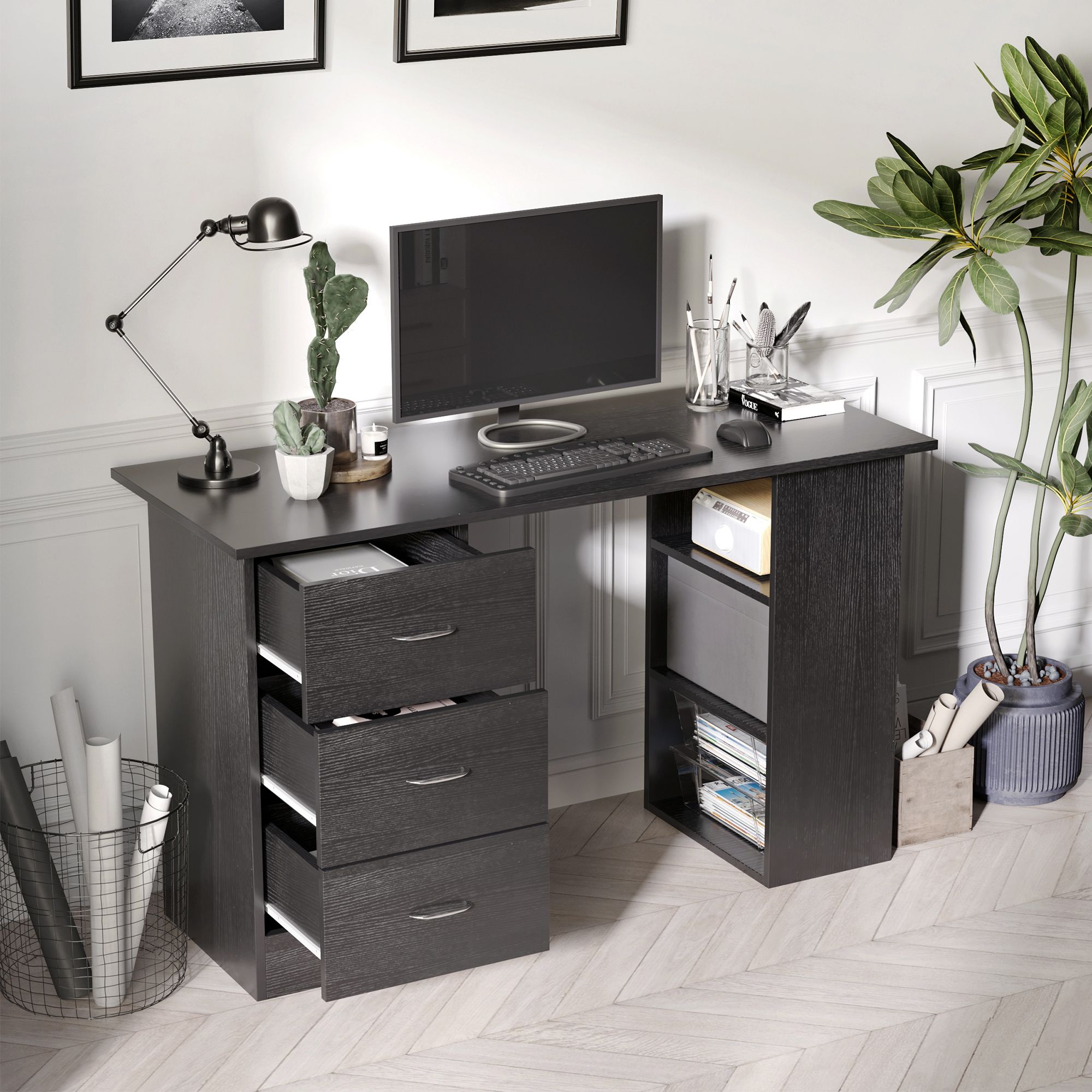 Home > 47 Inches Home Office Desk with 3-Tier Storage Shelves, Computer Desk with Drawers, Study Writing Table, Black