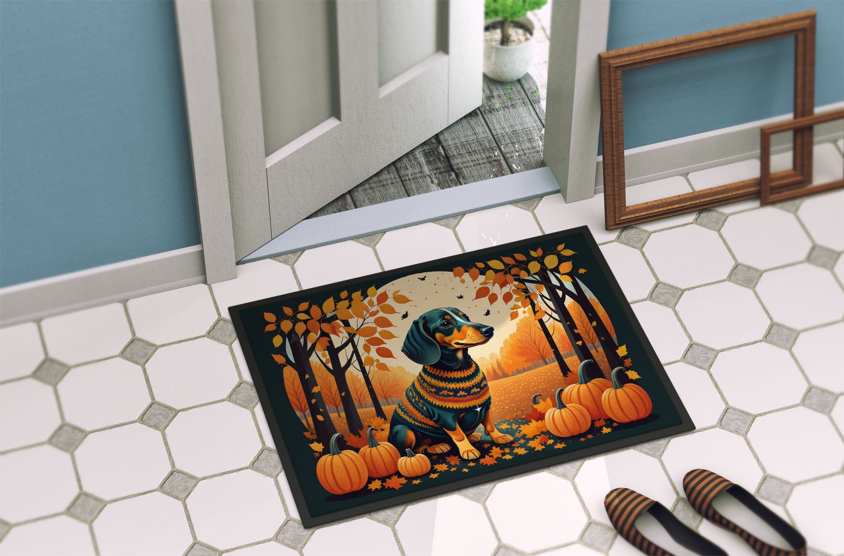 Dachshund Fall Doormat Front Door Mat Indoor Outdoor Rugs for Entryway, Non Slip Washable Low Pile, 24H X 36W
