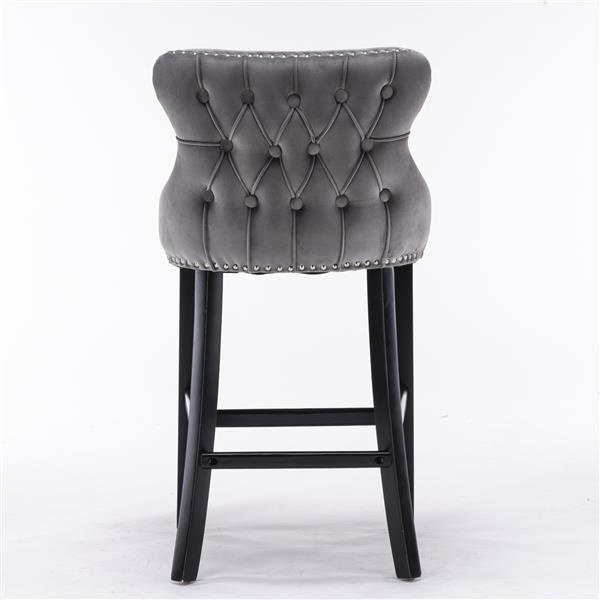 Furniture,Contemporary Velvet Upholstered Wing-Back Barstools with Button Tufted Decoration and Wooden Legs, and Chrome Nailhead Trim, Leisure Style B