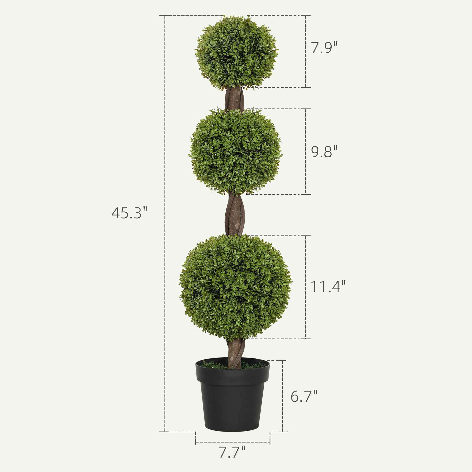HOMCOM 2 PCS 45.3" Topiary Balls Boxwood Topiary Plants, 3 Ball Fake Plants in Pots for Indoor Outdoor Living Room, Green