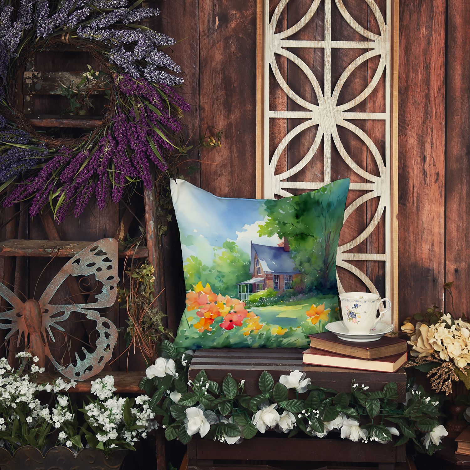 Massachusetts Mayflowers in Watercolor Throw Pillow Machine Washable, Indoor Outdoor Decorative Pillow for Couch, Bed or Patio, 14Hx14W